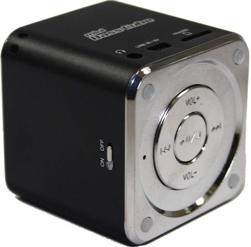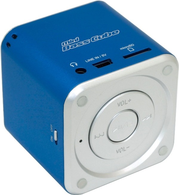 JAYtech Bluetooth portabler Lautsprecher / MP3 Player Mini Bass Cube. The player plays back WMA/MP3 files and also WMA DRM .The bit rate is WMA 32 - 192kbps and MP3 32 - 320kbps This 512 MB player in blue is compatible with both MP3 and WMA digital audio files, and it has an integrated FM radio (with record function), voice recorder, and clock.