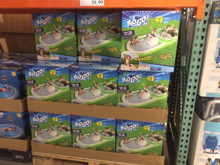 Bestway Rectangular Pool 18’x9’x48” CostcoChaser. Set includes: 1 Pool; 1 stand filter pump; Pool ladder; Pool cover; 1 solar water heater (22,795 L) of water, giving your family plenty of room to splash and swim around